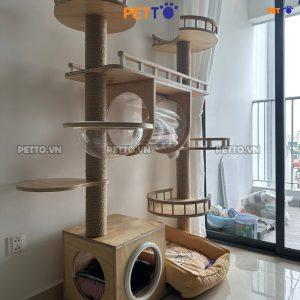 Không phải tự nhiên mà chúng ta gọi tên món đồ này là nhà cây cho mèo. Vì nó có tác dụng giống như 1 ngôi nhà cho mèo ở vậy. Nó được cấu tạo bởi các trụ cào móng và ô nhà nằm cho mèo. Những ngôi nhà cây được thiết trên cao với những ô nhà đủ các dạng kích thước và hình dạng khác nhau. Có khi là hình tròn, hình vuông, cũng có khi lại là hình tứ giác.