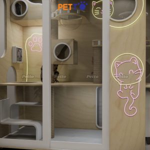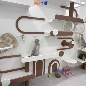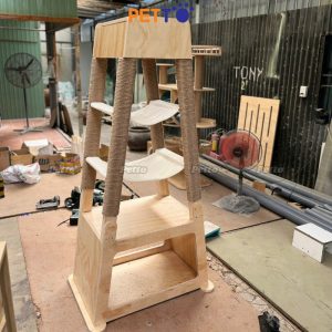 - Thiết kế: Nhà cho mèo nên có thiết kế hợp lý và hấp dẫn để mèo có thể khám phá và chơi đùa. Có thể bao gồm các tầng, cửa sổ, lều ngủ, bậc leo lên xuống, cầu nối, và các hoạt động chơi khác.