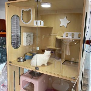 - An toàn: Đảm bảo rằng nhà cho mèo có các tính năng an toàn như cửa và cửa sổ được cài đặt để ngăn mèo trốn thoát hoặc rơi xuống từ độ cao. Các bộ phận của nhà nên được lắp đặt chắc chắn và không có nguy cơ gây thương tích cho mèo.