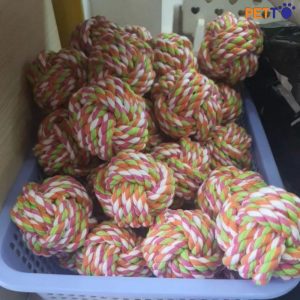 Banh đồ chơi cho chó mèo làm từ dây thừng chắc chắn – cứng cáp và hạn chế tối da bưng trong thời gian bé chơi đùa.