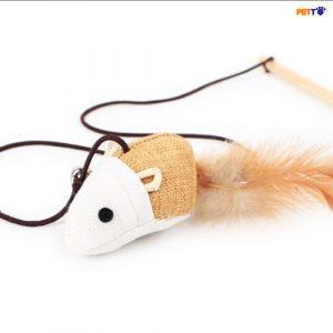 - Ở phần đầu dây cần có gắn thêm một con chuột bông đáng yêu, tạo ra nhiều khả năng thu hút sự chú ý của bé mèo và kích thích sự tò mò của chúng.