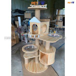 Cat tree cho mèo bằng GỖ PLYWOOD kèm lồng kính NHIỀU TẦNG cho nhà nhiều bé vui chơi CH044