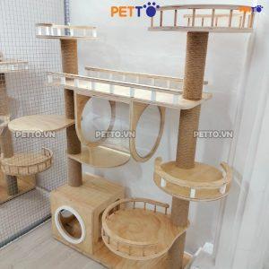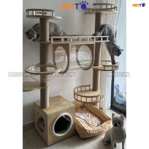 Cattree bằng GỖ cho mèo THÁP ĐÔI kết hợp LỒNG KÍNH cao 1m7 cho nhà nhiều mèo CH047