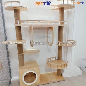Cattree bằng GỖ cho mèo THÁP ĐÔI kết hợp LỒNG KÍNH cao 1m7 cho nhà nhiều mèo CH047
