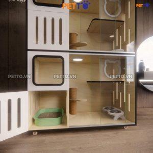 Bố trí khoang đựng đồ linh hoạt, tháo lắp dễ dàng. Kết cấu vững chắc, di chuyển thoải mái. Khách hàng có thể tùy chọn số ô, hay độ rộng cho chó mèo. Shop cũng có thể cung cấp tủ với số ô, màu sắc và hình cánh tủ như mong muốn của khách.