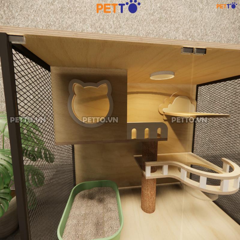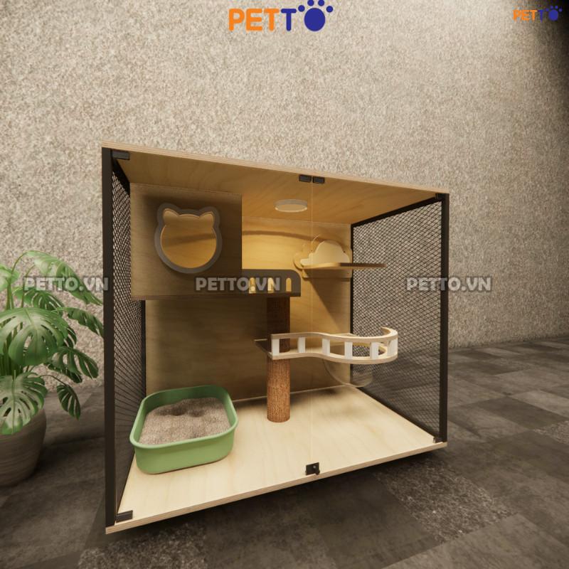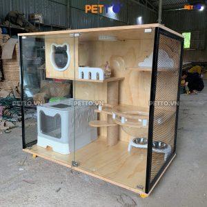 – Chuồng GỖ cho mèo bằng gỗ PLYWOOD kết hợp cửa kính cường lực