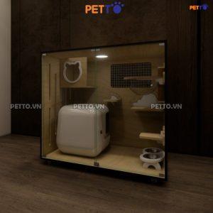 Chuồng mèo bằng gỗ PETTO để được nhà vệ sinh LỚN kèm Ổ NẰM MICA trong suốt, chuồng mèo rộng rãi phù hợp 1-3 bé CC129