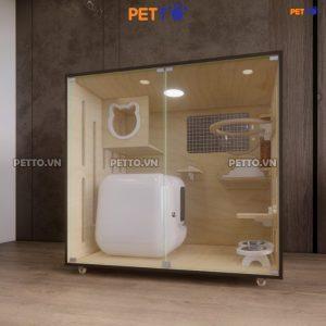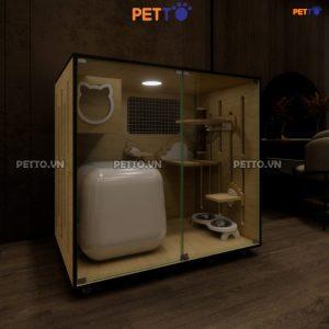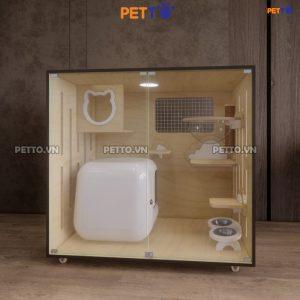 Chuồng mèo bằng gỗ PETTO để được nhà vệ sinh LỚN kèm Ổ NẰM MICA trong suốt, chuồng mèo rộng rãi phù hợp 1-3 bé CC129