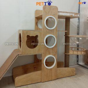 Cattree cho mèo PETTO nhà cây cho mèo bằng gỗ SIÊU TO có CẦU TUỘT thoải mái leo trèo CH048