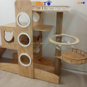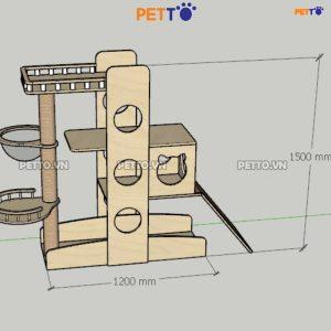 Cattree cho mèo PETTO nhà cây cho mèo bằng gỗ SIÊU TO có CẦU TUỘT thoải mái leo trèo CH048