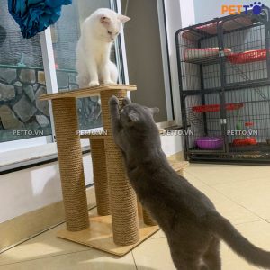 Thiết kế nhỏ gọn, chắc chắn, cây cào móng cho mèo rất phù hợp cho những chú mèo có sở thích cào móng ở tư thế đứng gồm 2 trụ được kết nối với nhau bằng những nhà hình hộp cho mèo nằm nghỉ ngơi.