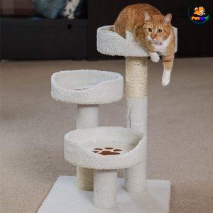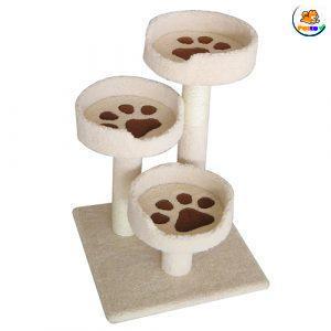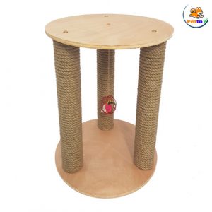 Được thiết kế bao gồm 3 trụ cào móng và trên đỉnh 3 trụ cào đều có ổ đệm được nối tiếp nhau bằng tấm đế gỗ. Trụ cào móng an toàn không gây xước và tổn thương. Tạo sự hấp dẫn cho mèo cưng chơi đùa, lèo chèo thỏa thích, mệt có thể nghỉ ngơi. Mèo có thể ngủ 14 tiếng một ngày trong cat tree.