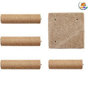 Sản phẩm được thiết kế với 4 trụ cào móng và 1 ổ nằm giúp mèo có thể vừa thỏa mãi được cuộc vui chơi của mình mà vẫn cho thể cào móng làm hạn chế hư hỏng đồ vật trong nhà.