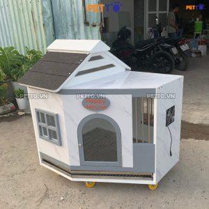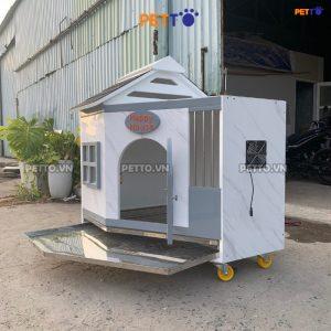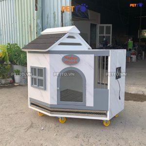 Nhà cho chó PETTO nhà chó bằng gỗ ỐP PVC kết hợp NGÓI BITUM và khay inox vệ sinh TIỆN LỢI và SANG TRỌNG DH021