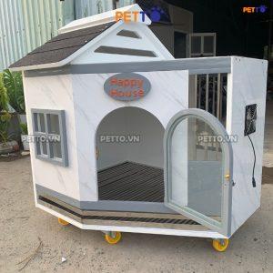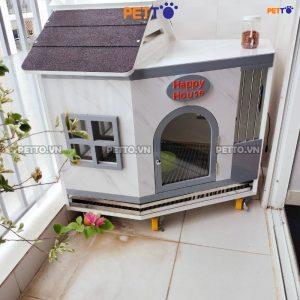 Nhà cho chó PETTO nhà chó bằng gỗ ỐP PVC kết hợp NGÓI BITUM và khay inox vệ sinh TIỆN LỢI và SANG TRỌNG DH021