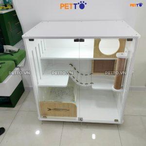 Nhà cho mèo PETTO nhà mèo bằng GỖ sơn TRẮNG hiện đại và sang trọng dành cho 2-3 bé mèo CC073
