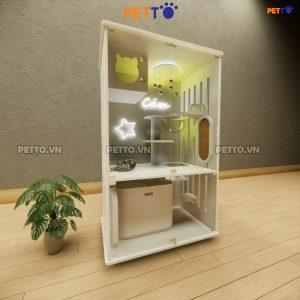 Nhà gỗ cho mèo PETTO chuồng mèo gỗ PLYWOOD sơn TRẮNG trang trí ĐÈN LED ÂM điểm nhấn CC100