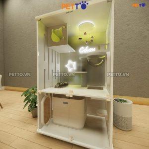 – Đặc biệt, tủ mèo bằng gỗ sử dụng hệ thống ĐÈN LED âm chạy viền theo nội thất tạo điểm nhấn và tăng phần sang trọng cho chiếc nhà gỗ này