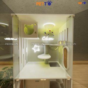 Nhà gỗ cho mèo PETTO chuồng mèo gỗ PLYWOOD sơn TRẮNG trang trí ĐÈN LED ÂM điểm nhấn CC100