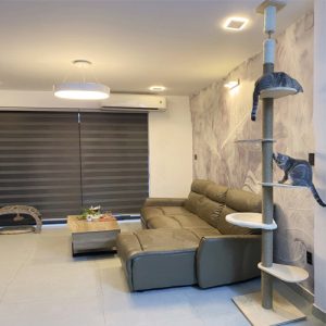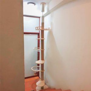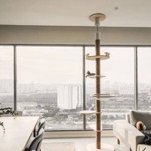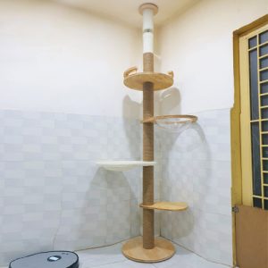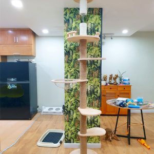 Với chiều cao lý tưởng, nhìn từ sàn đến trần nhà với chiều cao có thể điều chỉnh phù hợp với từng khách hàng. Thấp được dữ kiên cố bằng cách sử dụng phụ kiện gắn trần được kích hoạt chắc chắn.Tháp mèo này có ổ nằm làm bằng lông giả siêu mềm mại ngồi thư giãn trên cao, ghế dài nghỉ ngơi với lồng kính trong suốt quan sát xung quang.