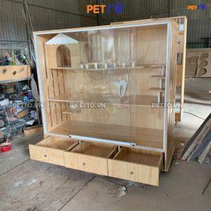 – Tủ cho mèo hiện đại này sẽ dành cho pet cưng có những khoảng không gian riêng tư, yên tĩnh. Kết hợp cửa tủ kính trong suốt giúp mèo có thể quan sát xung quanh vừa tạo sự sang trọng.