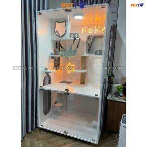 Tủ mèo 2 tầng để vừa máy vệ sinh PURAMAX kết hợp LED NEON CC137