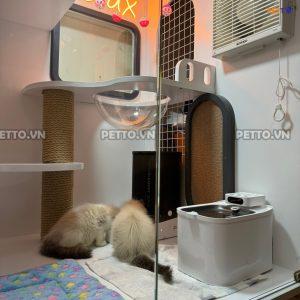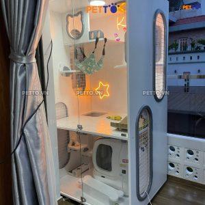 Tủ mèo 2 tầng để vừa máy vệ sinh PURAMAX kết hợp LED NEON CC137