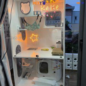 – Tủ gỗ cho mèo này còn được trang trí bằng đèn LED NEON vô cùng ấn tượng và bắt mắt tạo điểm khác biệt cho căn nhà