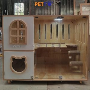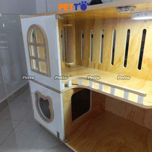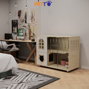 – Tủ mèo gỗ có thiết kế xinh xắn, nhấn nhá họa tiết trắng tạo điểm nhấn cho “ngôi nhà”