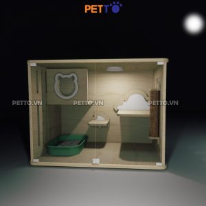 – Kết cấu tủ có 2 chỗ nằm, một chỗ kín đáo và một chỗ thoáng phù hợp cho 1 đến 2 bé mèo