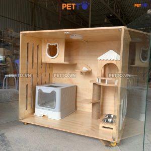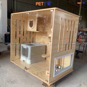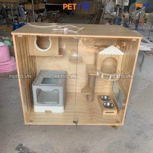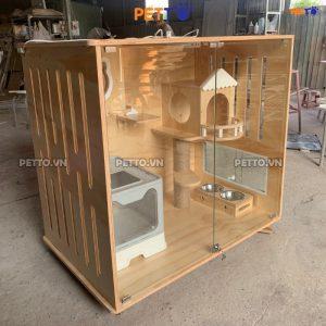 Tủ nuôi mèo bằng gỗ 2 tầng kèm lồng Kính CC003_2