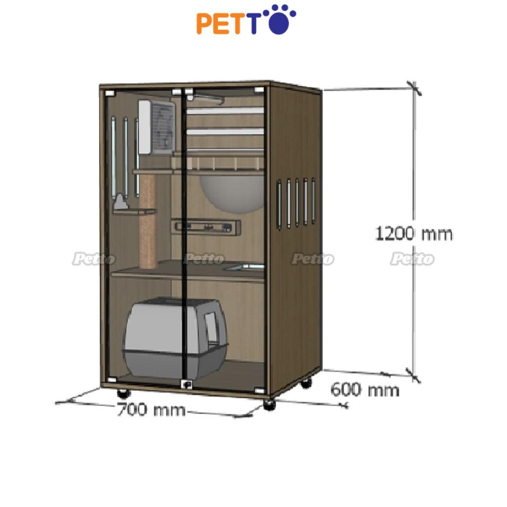 Tủ mèo basic MDF kích thước 700mm 600mm 1200mm CC197 gồm kích thước bánh xe)