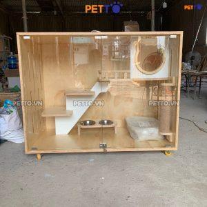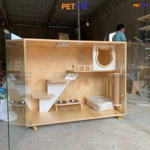 Chuồng cho mèo được sử dụng chất liệu gỗ plywood cấp giúp sử dụng thời gian dài, di chuyển dễ dàng. Trụ cào móng kết hợp cùng thảm cào poly giúp mèo dễ dàng chuốt bỏ móng củ, có độ bền và tuổi thọ sử dụng lâu hơn so với dây thừng, không bị rơi vãi khi cào, và đặc biệt, thảm cào poly có thể thay thế được. Đây là loại chất liệu được ưa chuộng nhất trên thị trường hiện nay bởi độ bền, an toàn cũng như tính thẩm mỹ cao.
