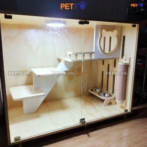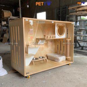 Chuồng cho mèo được sử dụng chất liệu gỗ plywood cấp giúp sử dụng thời gian dài, di chuyển dễ dàng. Trụ cào móng kết hợp cùng thảm cào poly giúp mèo dễ dàng chuốt bỏ móng củ, có độ bền và tuổi thọ sử dụng lâu hơn so với dây thừng, không bị rơi vãi khi cào, và đặc biệt, thảm cào poly có thể thay thế được. Đây là loại chất liệu được ưa chuộng nhất trên thị trường hiện nay bởi độ bền, an toàn cũng như tính thẩm mỹ cao.