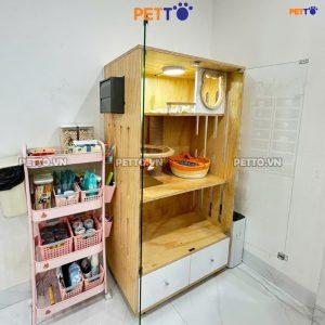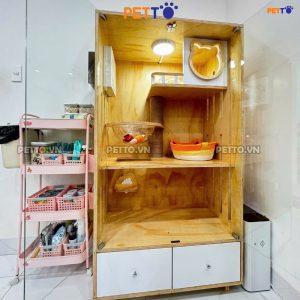 Nhà cho mèo PETTO nhà cho mèo bằng GỖ PLYWOOD cao cấp kết hợp NGẮN KÉO để đồ cho mèo TIỆN LỢI nhà mèo có QUẠT MÁT CC143
