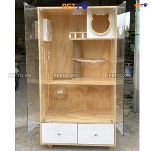 – Nhà gỗ kính cho mèo có tính thẩm mỹ cao, phù hợp với không gian hiện đại.