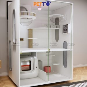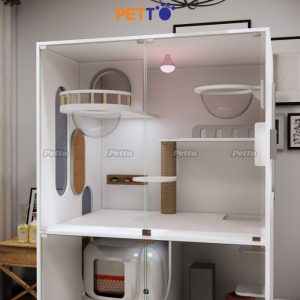🐾 Tủ mèo Lux gỗ Plywood kích thước 1300mm * 1000mm * 1800mm sơn trắng kèm quạt thông gió 2 chiều CC196