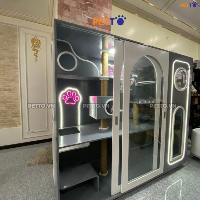 – Đặc biệt, tủ mèo bằng gỗ sử dụng hệ thống ĐÈN LED âm chạy viền theo cửa và nội thất để làm nổi bật căn nhà