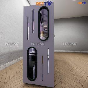 – Tủ nuôi mèo bằng gỗ PLYWOOD có tone màu tím chủ đạo phối đen vô cùng sang trọng sẽ là điểm nhấn cho ngôi nhà của bạn thay vì sử dụng những chuồng lưới, sắt