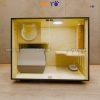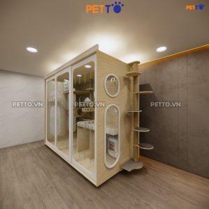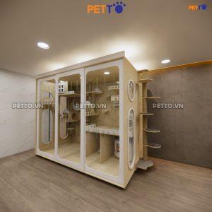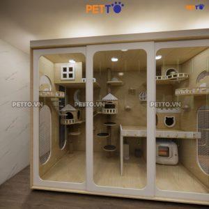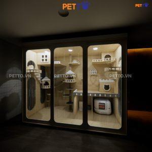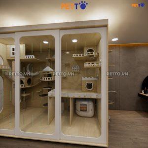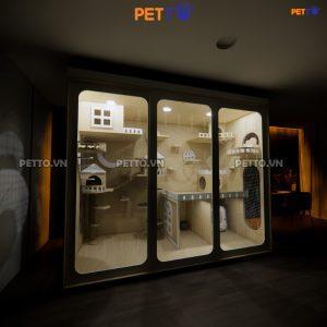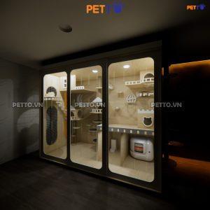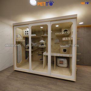 – Nhà cho mèo được thiết kế với hệ thống cửa 3 cánh cửa lùa nhẹ nhàng cùng với chất liệu mica khoét lỗ thông thoáng