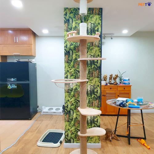 Tháp mèo với độ cao và phụ kiện tùy chỉnh, không cần phải đóng đinh hay khoan tường, quá ư là tuyệt.