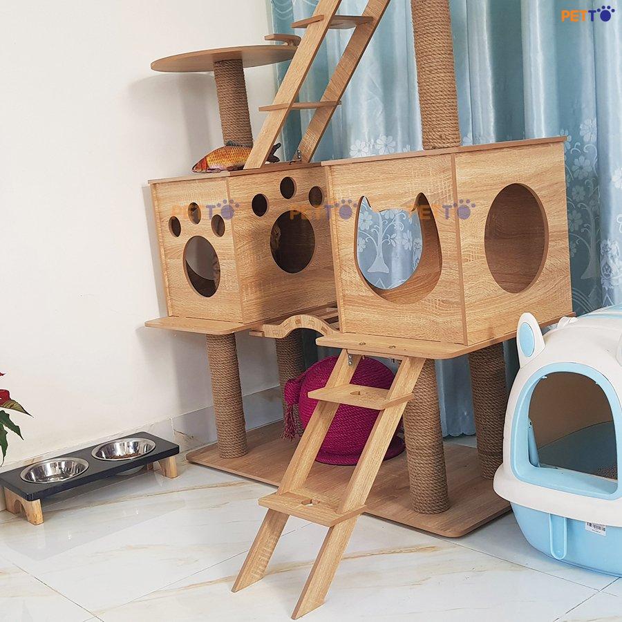 Như vậy, với loại nhà này, mèo cưng vừa có thể nô đùa thoải mái không sợ làm hư hỏng các đồ vật trong nhà, lại vừa có thể nghỉ ngơi, thư giãn khi cần. Chất liệu gỗ vô cùng an toàn với các bé mèo nhưng lại dễ bị mốc khi thời tiết ẩm hoặc khi bạn không vệ sinh cẩn thận.